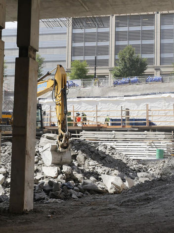 Four levels of underground parking completed beneath a live construction site